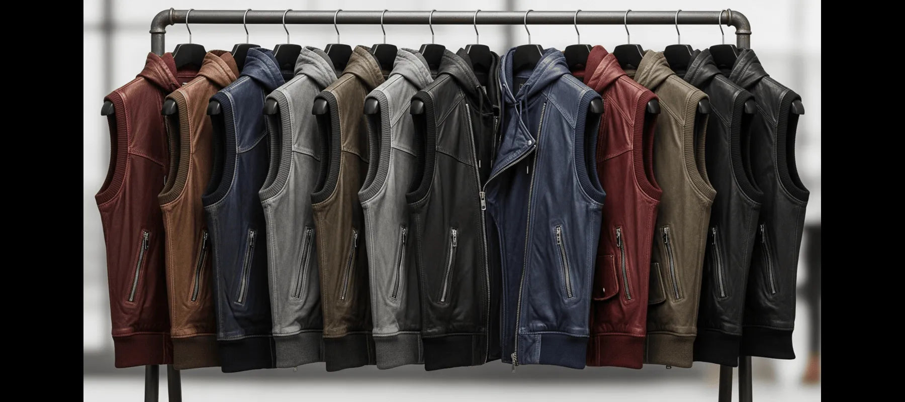 Shop our Men's Sleeveless Leather Hoodie Jackets for a bold, stylish look....
